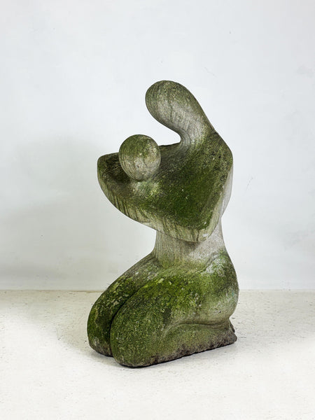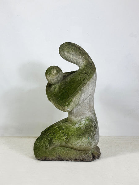 An elegant abstract sculpture expressing the bond between parent and child. Soft, flowing forms and natural stone textures create a timeless piece. Beautifully naturally weathered, with a minimalist appeal.